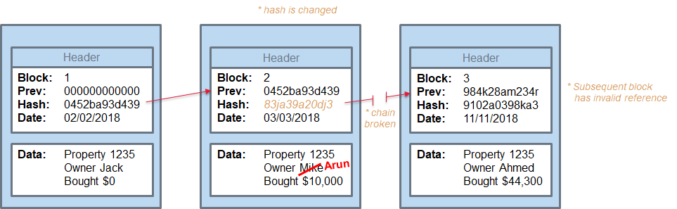 For example, if someone tries to manually manipulate the transaction in the second block...