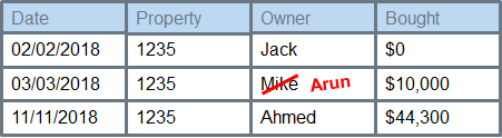 Let's take the example of the buying and selling of land. How would you maintain this information to ensure that there is an unalterable audit trail?