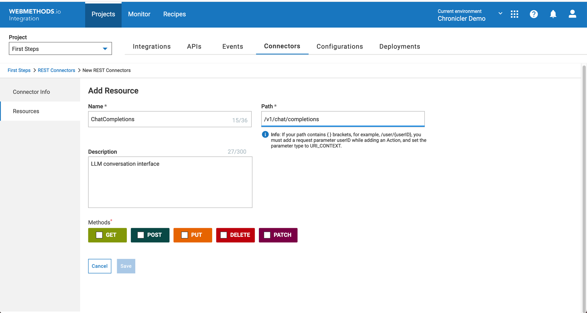- Log in to your Webmethods.io environment and select the "Connectors" tab. On the left navigation pane, choose "REST" connectors.