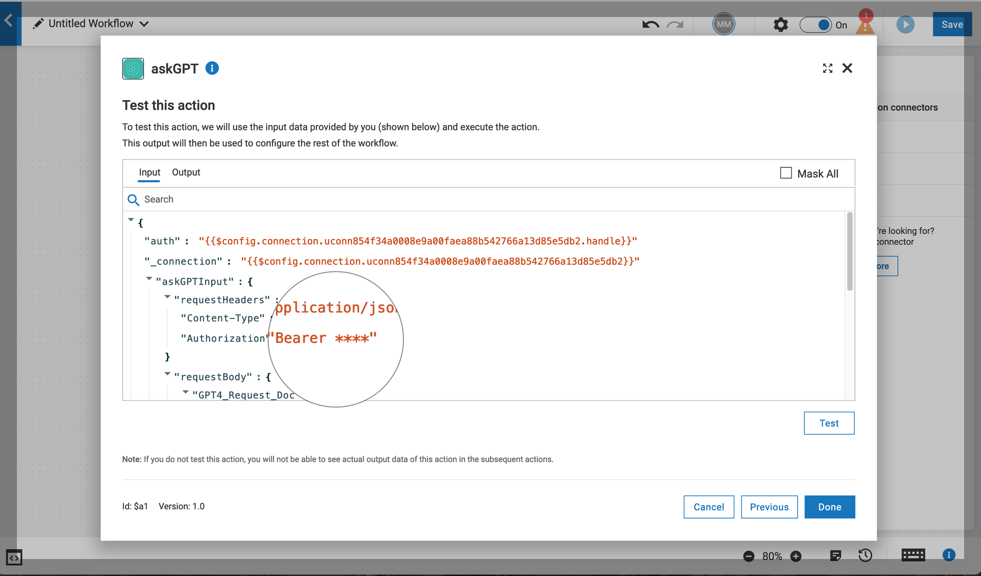 - In the list of operations, click on the play icon ▶️ for the "askGPT" operation.