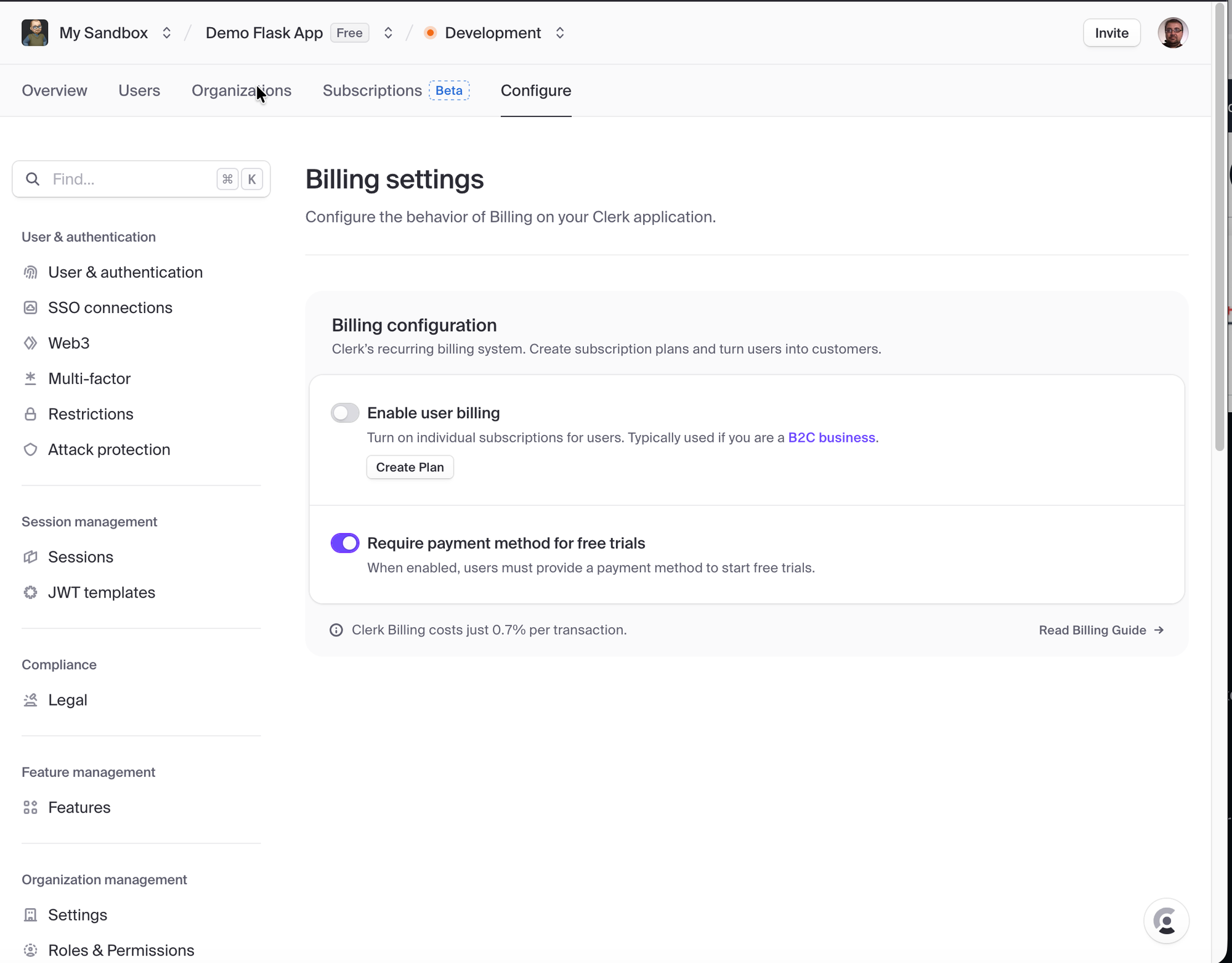 Let's get back to the Clerk dashboard, enable billing, and create subscriptions for the application.