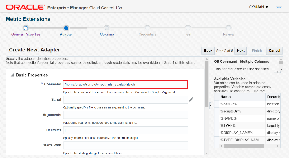 4. In this case, the Target Type we are referencing is of type "Host". Provide a name for the metric extension, a display name, and choose "OS Command - Multiple Columns".