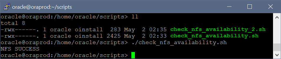 Here's a sample execution of the script. The output is either "NFS SUCCESS" or "NFS FAIL".