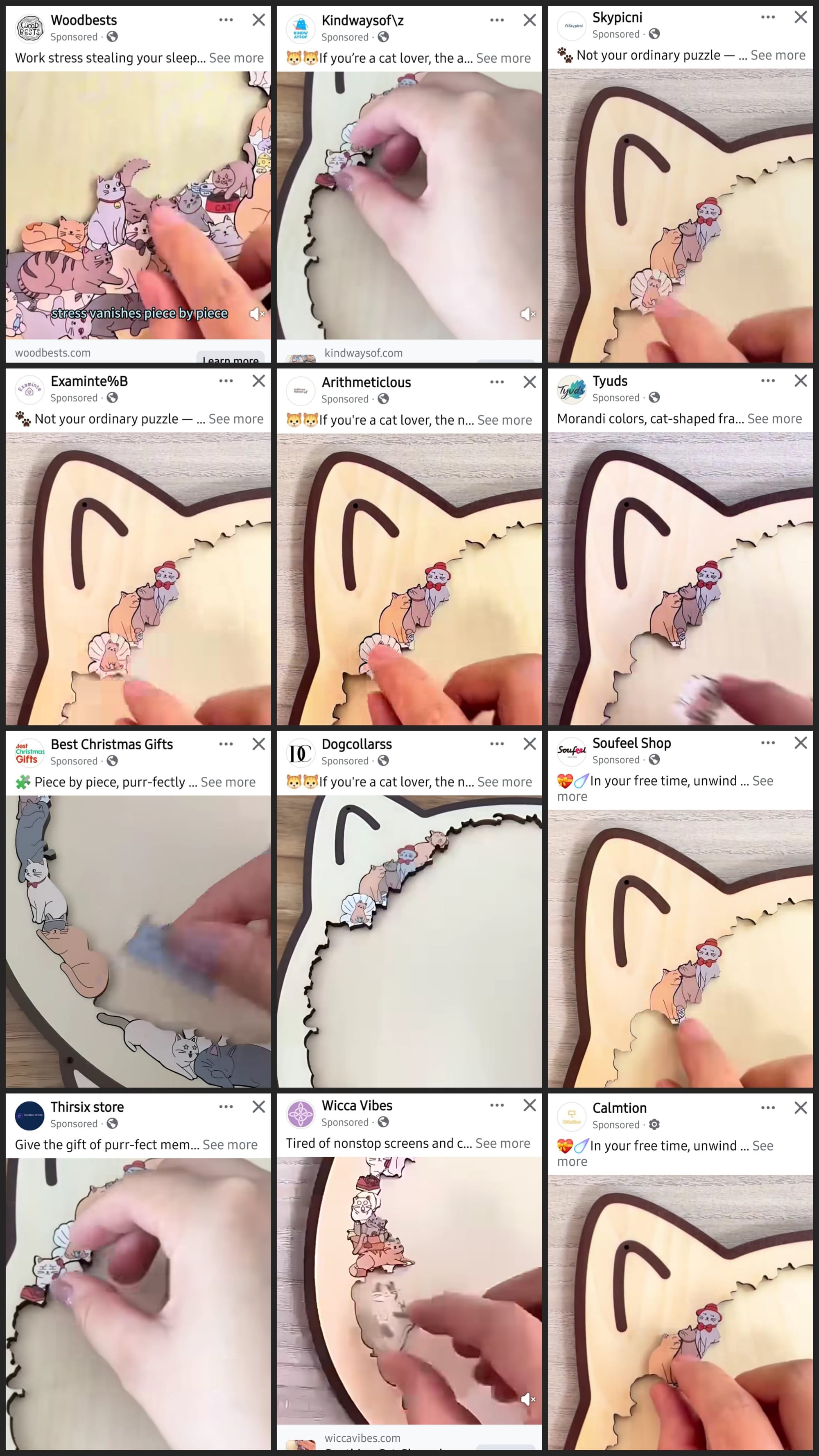 The product could be from a dropshipping supplier where many sellers are simply re-using the same ad. Basically, a manufacturer (often in China) creates a product video and lets hundreds of small sellers run ads using the same footage.