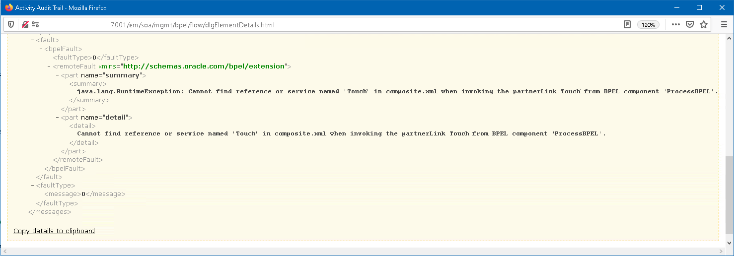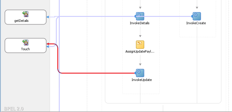 java.lang.RuntimeException: Cannot find reference or service named 'Touch' in composite.xml when invoking the partnerLink Touch from BPEL component 'ProcessBPEL'.