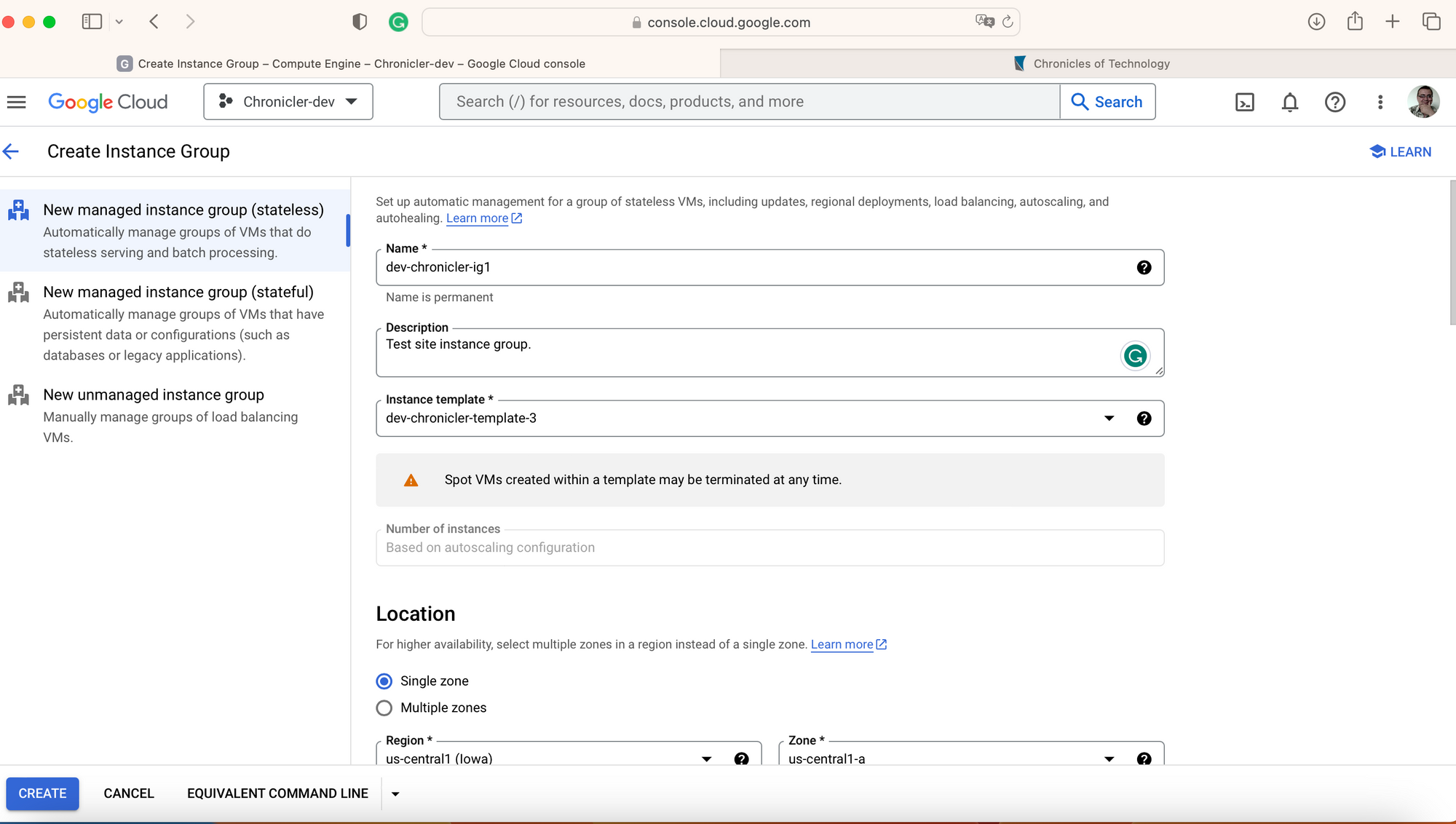 gcloud beta compute instance-groups managed create dev-chronicler-ig1 --project=chronicler-dev-XXXX --base-instance-name=dev-chronicler-ig1 --size=0 --description=Test\ site\ instance\ group. --template=dev-chronicler-template --zone=us-central1-a --list-managed-instances-results=PAGELESS --no-force-update-on-repair