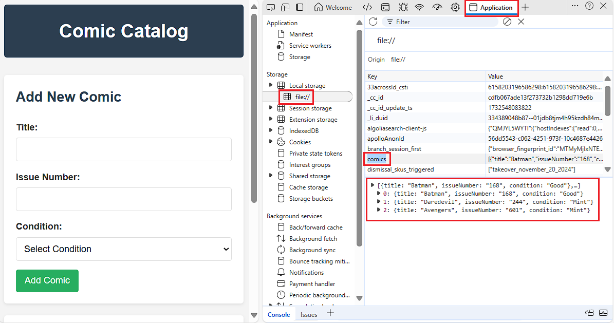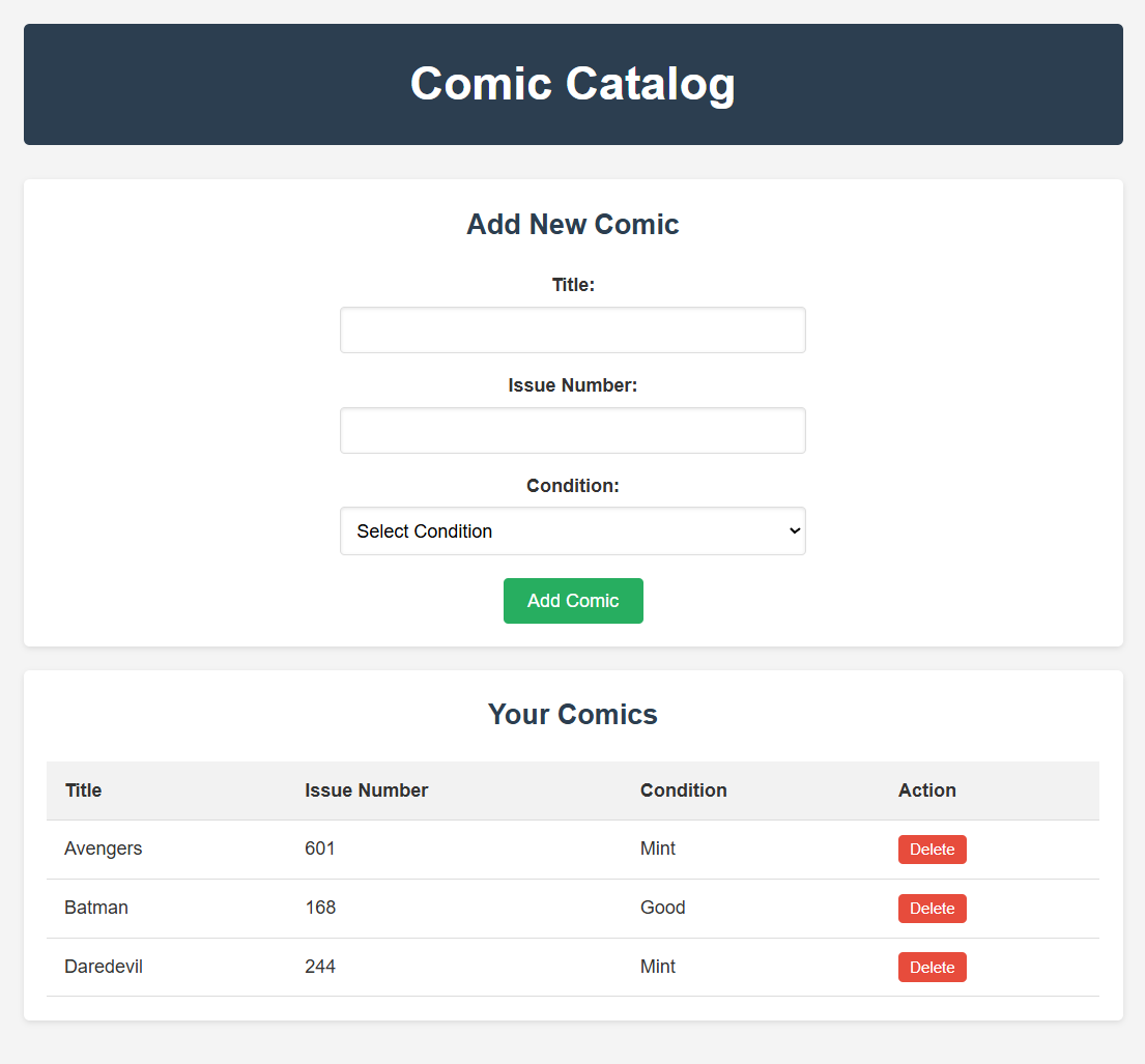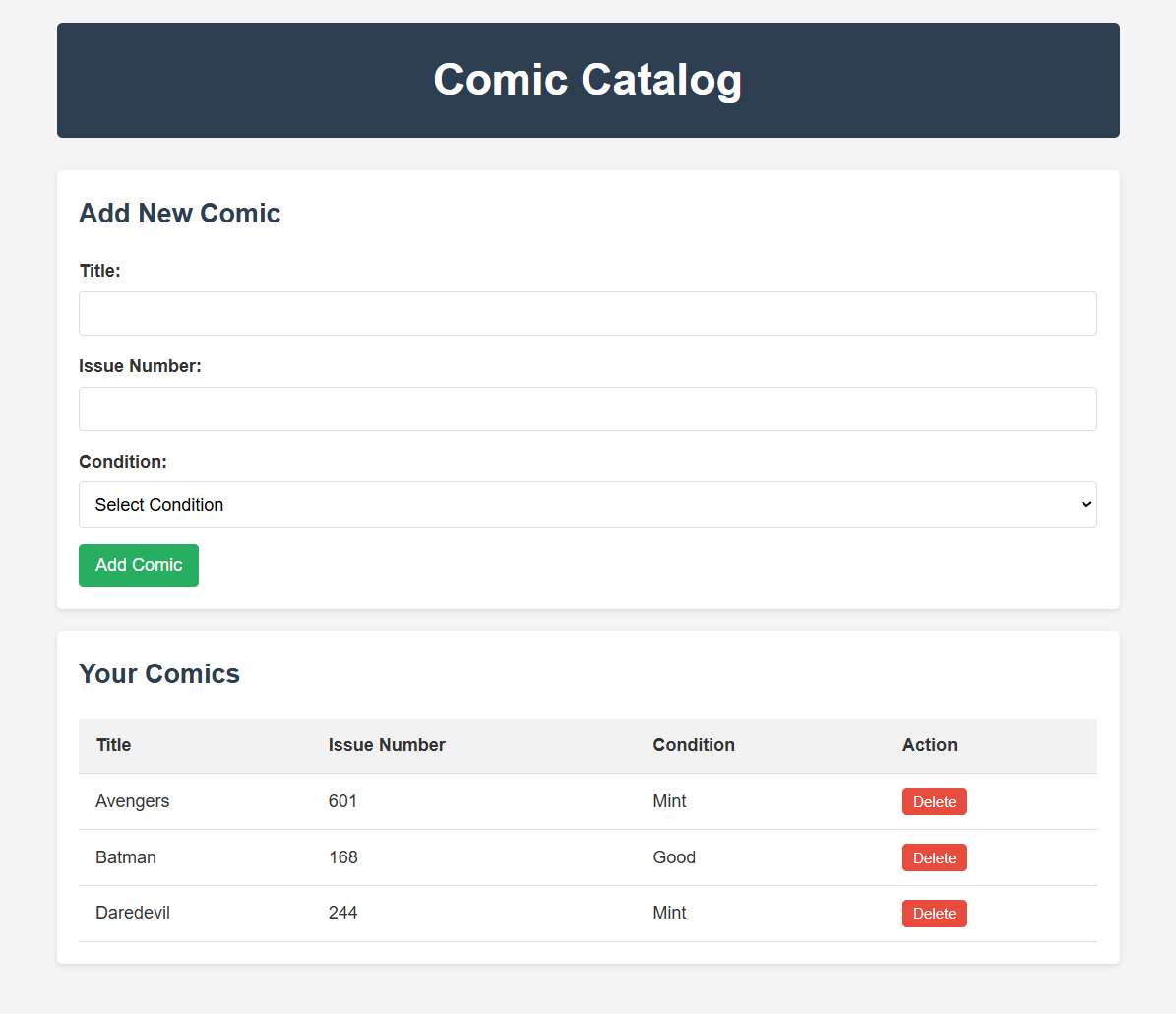 (5) A comic book will have a Title, Issue Number, and Condition.