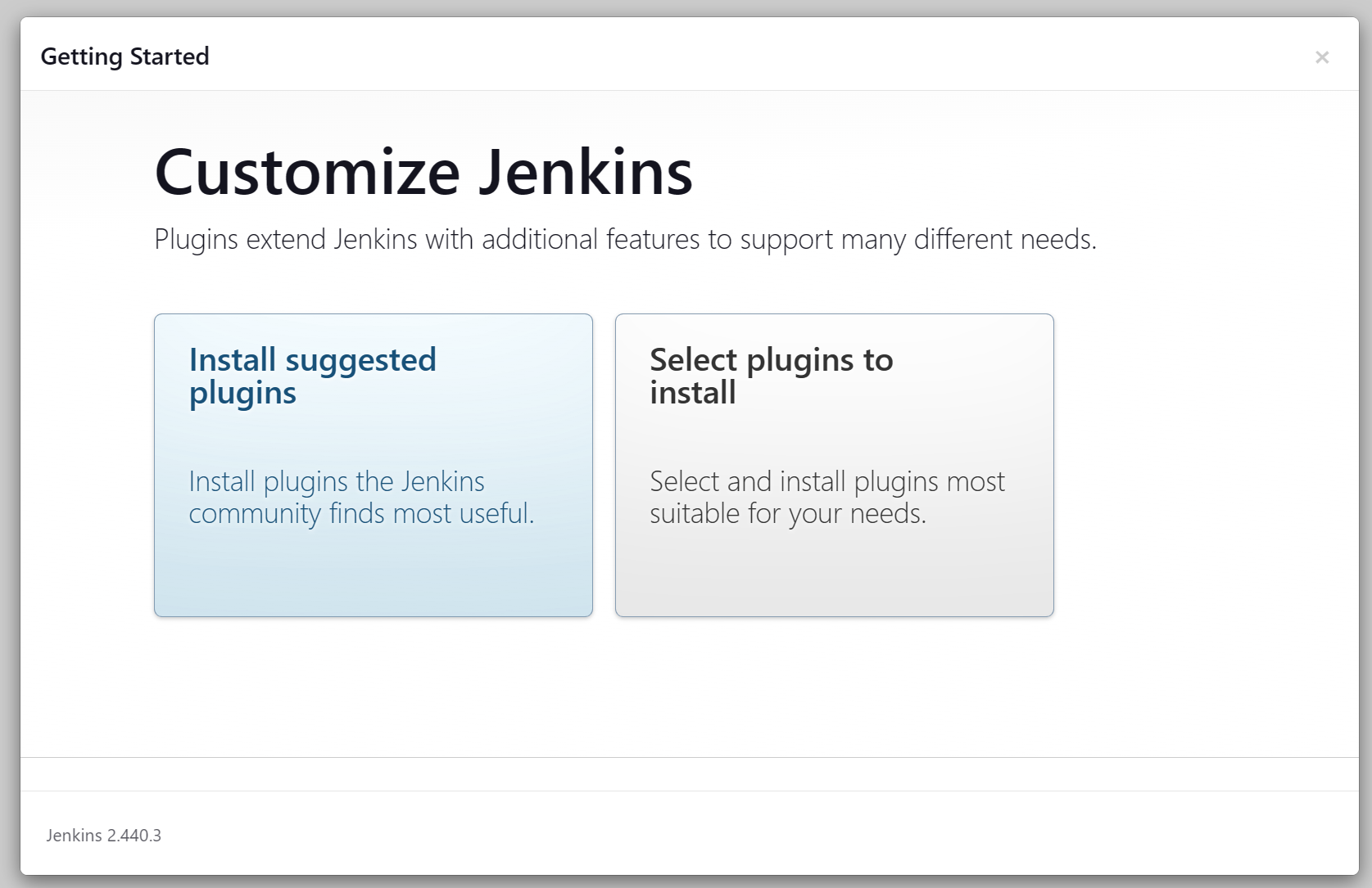 - Select "Install suggested plugins". Additional plugins can be installed in the future if needed.