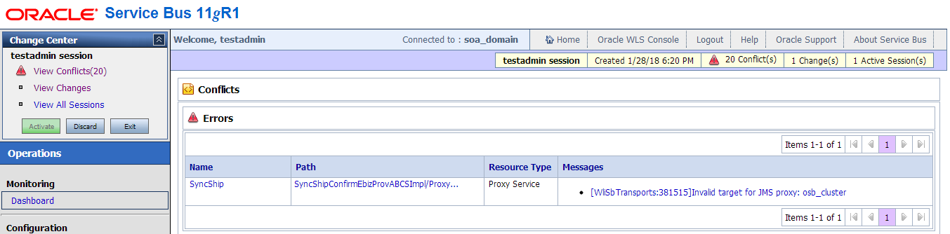 This OSB project was developed against the DEV server, where the OSB cluster name was called osb_cluster. However, our TEST environment had an OSB cluster name of osbcluster.