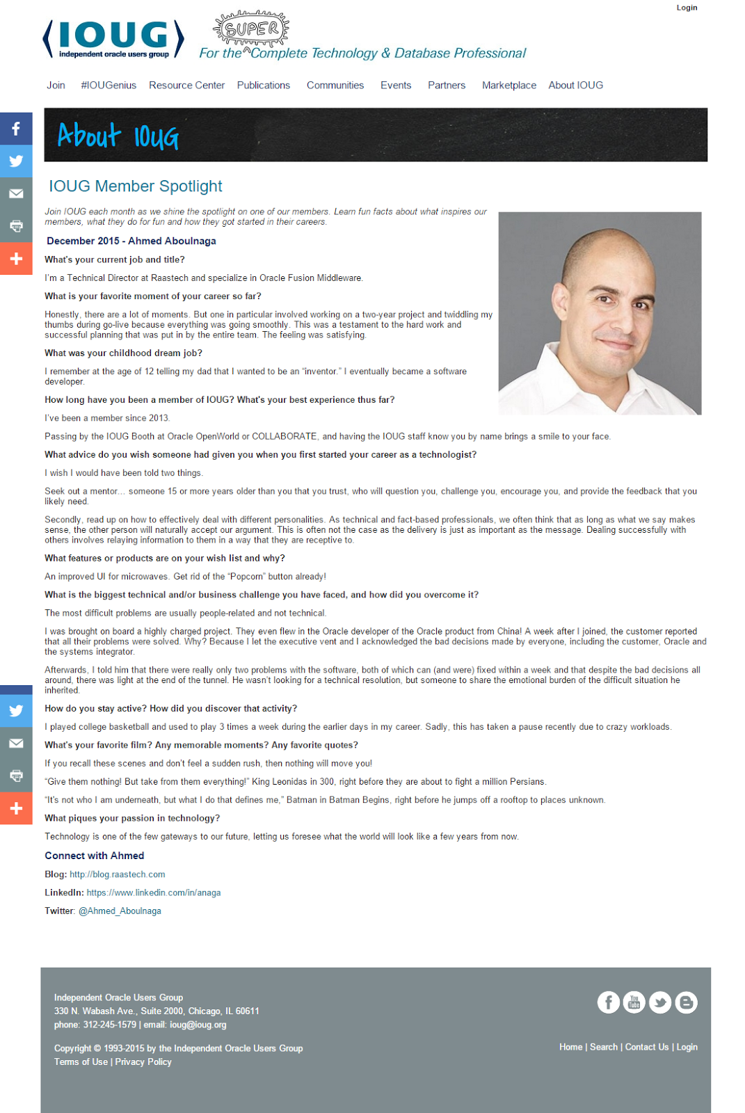 IOUG Member Spotlight (Dec 2015)