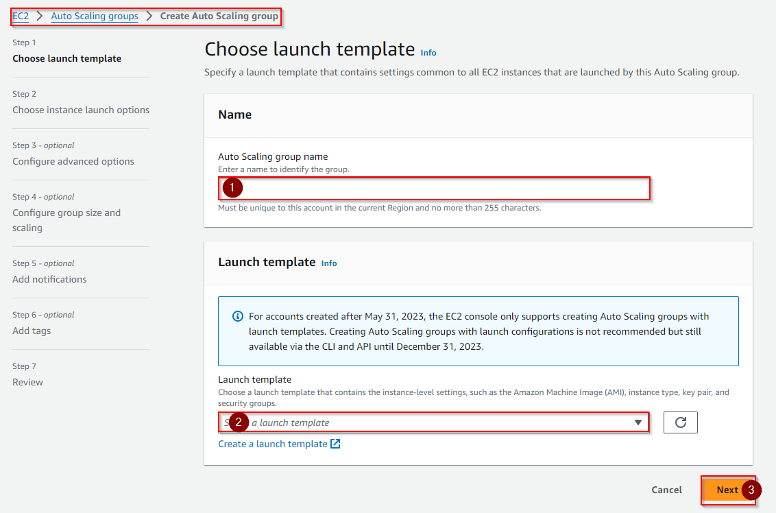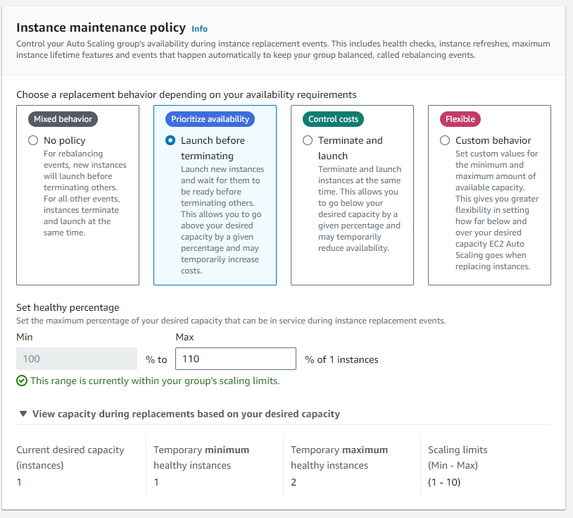- Launch Options and Launch Templates: These configurations specify the details of the instances that will be launched, such as instance type, Amazon Machine Image (AMI), key pairs, and security groups. Also, it will define which availability zone it will be based on considering the desired availability.