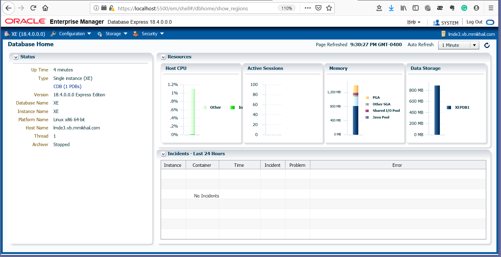 At this point you have database and listener started. Enjoy your mint fresh XE instance!