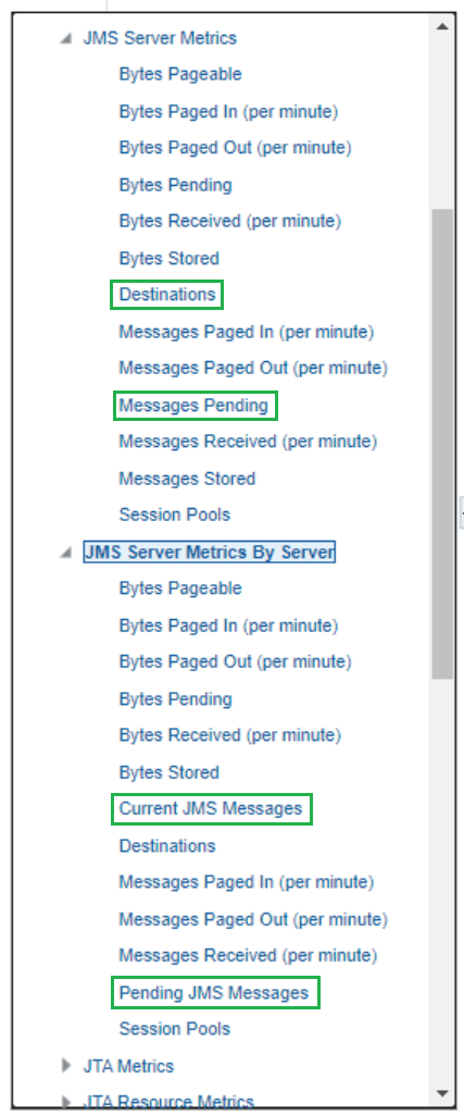 - Click on WebLogic Server > Monitoring > All Metrics.