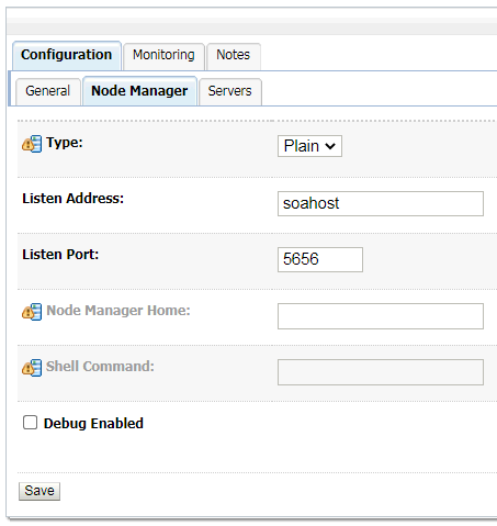 soa_tst_domain=/u01/app/oracle/domains/soa_tst_domainNow, update the machine configuration in the WebLogic Admin Console and startup Node Manager and you're good to go!