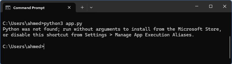 So I opened a command prompt and tried to run python3 from the command line. It didn't give me an error but it did give me the message: "Python was not found; run without arguments to install from the Microsoft Store, or disable this shortcut from Settings > Manage App Execution Aliases".