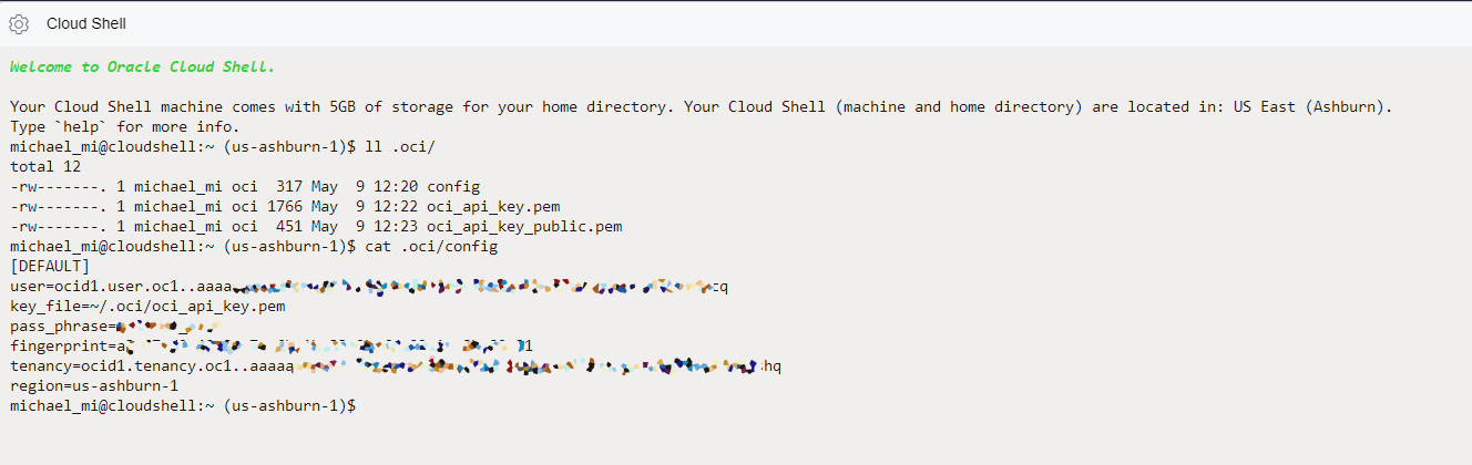 The Cloud Shell precisely fits my case. It's a small (about 5Gb) Linux Shell environment with the preconfigured OCI tools and clients. All you need to do is to configure your command line and create automation scripts. I have used OCI SDK documentation as the main reference, but you may find plenty of articles about CLI configuration.