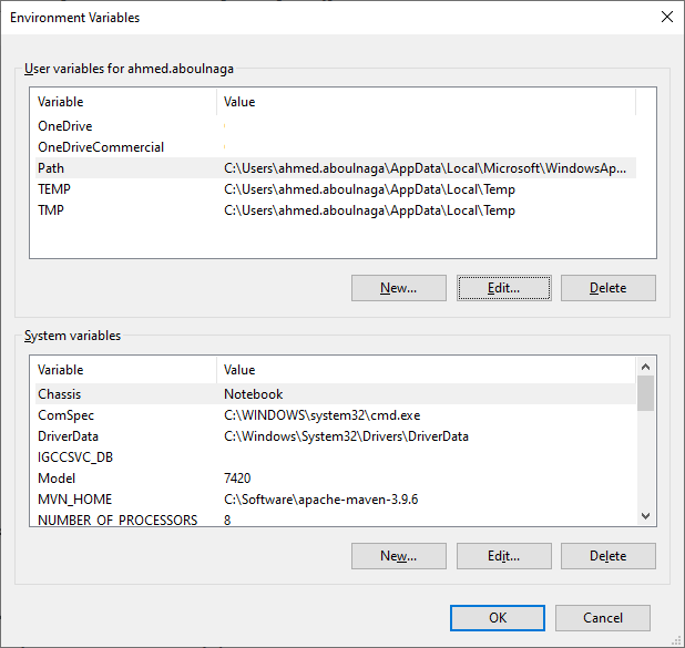 c. Add MVN_HOME as a system variable and append %MVN_HOME%\bin to the user variable Path.