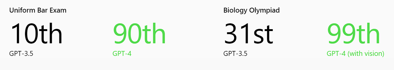 Based on OpenAI's findings, the image below captures how GPT-4 ranked in a much higher percentile in a test-taking scenario compared to GPT-3.5.