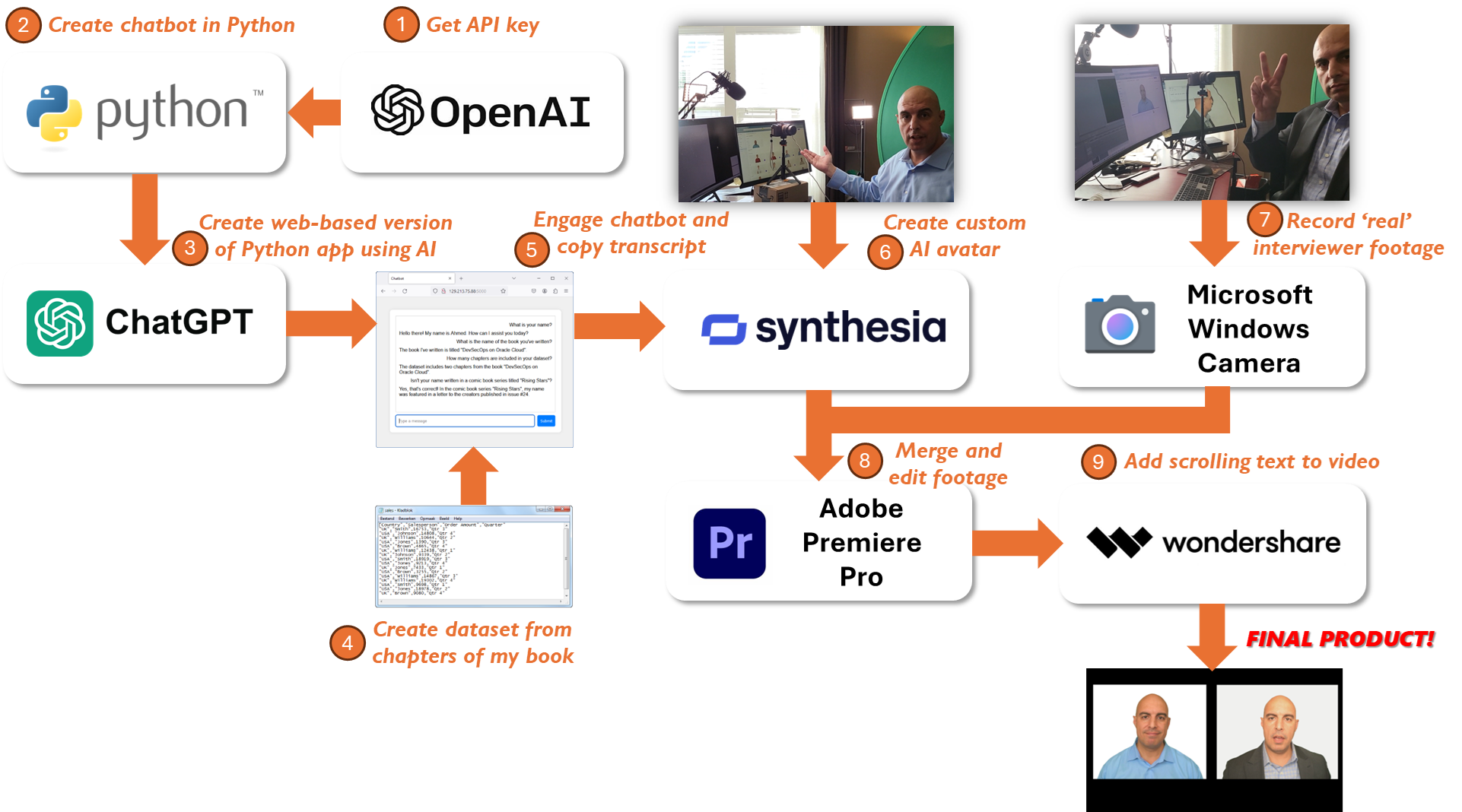 The cost for the use of the OpenAI API was $0.08 for a single chatbot session, $804 for the 12-month Synthesia subscription, and I reused my Adobe Premiere Pro and Wondershare licenses for final video editing. The many long hours I spent working on it... priceless.