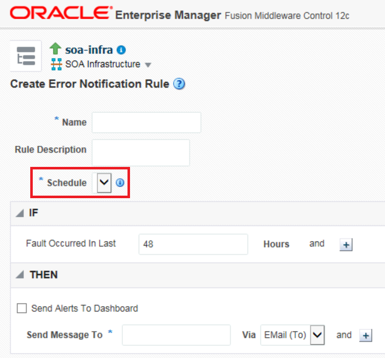 - Navigate to SOA > soa-infra (soa_server1) > SOA Infrastructure > Error Notification Rules