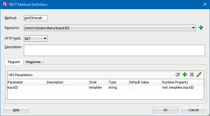 Now when you edit the method, it is also a GET method, but the runtime property here is now rest.template.inputID: