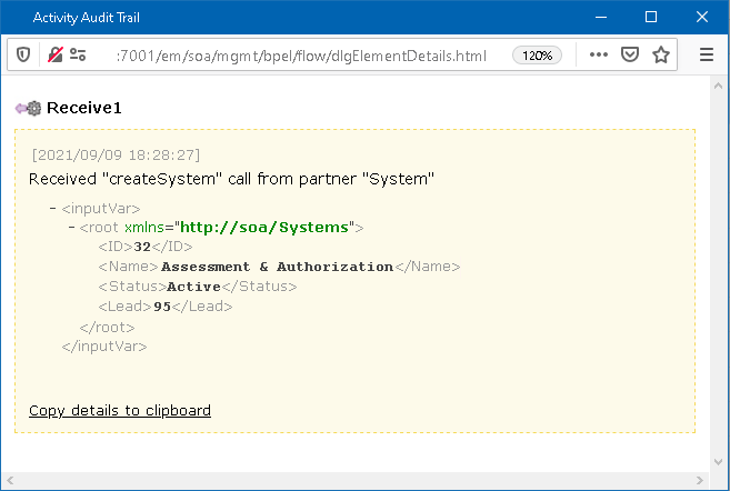 The problem is, here's how the Receive activity in my SOA instance looked like. Clearly it's telling me that the Name element is coming in with the data Assessment & Authorization: