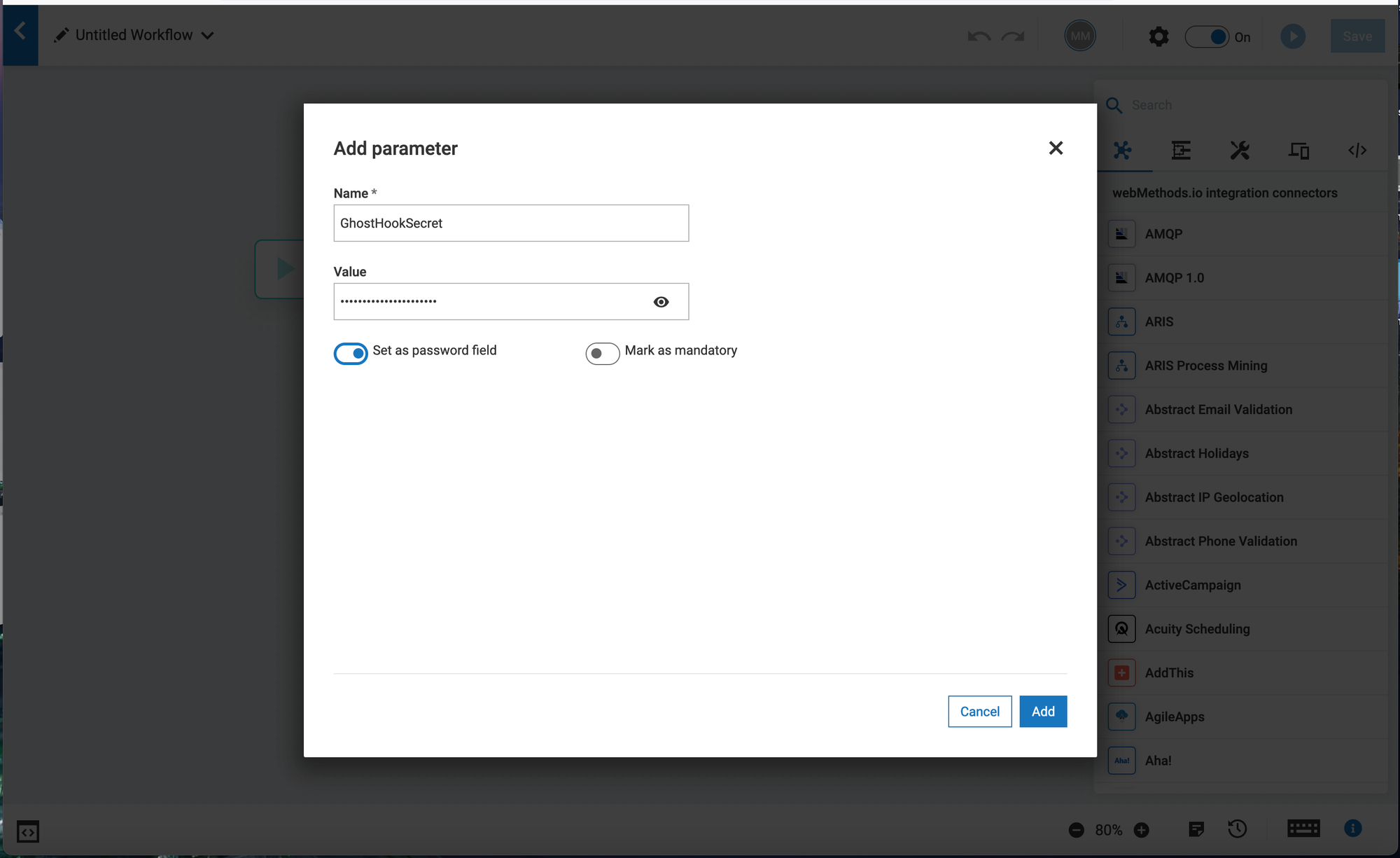- Flip "Set as a Password Field" to encrypt and hide the value.