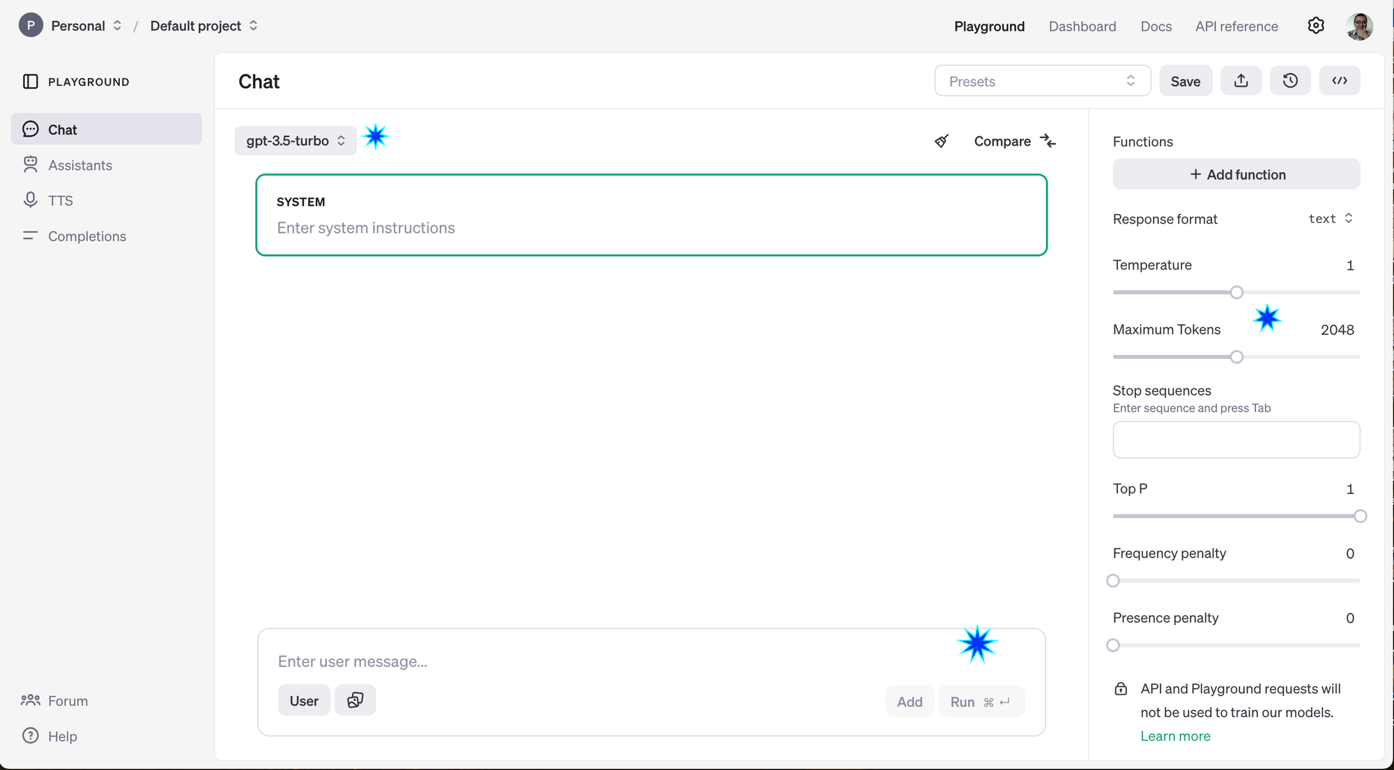 Like most LLM providers, OpenAI offers the model playground. As you can see from the screenshot, it offers controls that match our connector parameters.