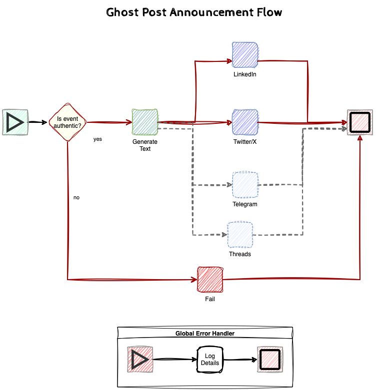 The design process starts with the goal and a series of actions to achieve that goal. For my specific case (more details here), the goal is to let people know we have a new publication. I publish announcements on my LinkedIn and X accounts, but I would love to extend our presence on other platforms, such as Threads or Telegram.